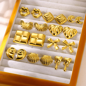 LUCKYDG impermeable no se deslustra joyería de moda personalizada al por mayor a granel 18K chapado en oro de acero inoxidable declaración Stud pendientes