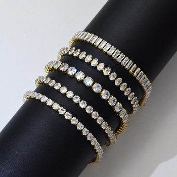 LUCKYDG impermeable sin deslustre hipoalergénico venta al por mayor personalizado 18K chapado en oro de acero inoxidable Cubic Zirconia pulsera de tenis
