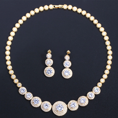 Juego de piedras de circonia cúbica chapadas en oro de lujo, joyería de oro de 24k